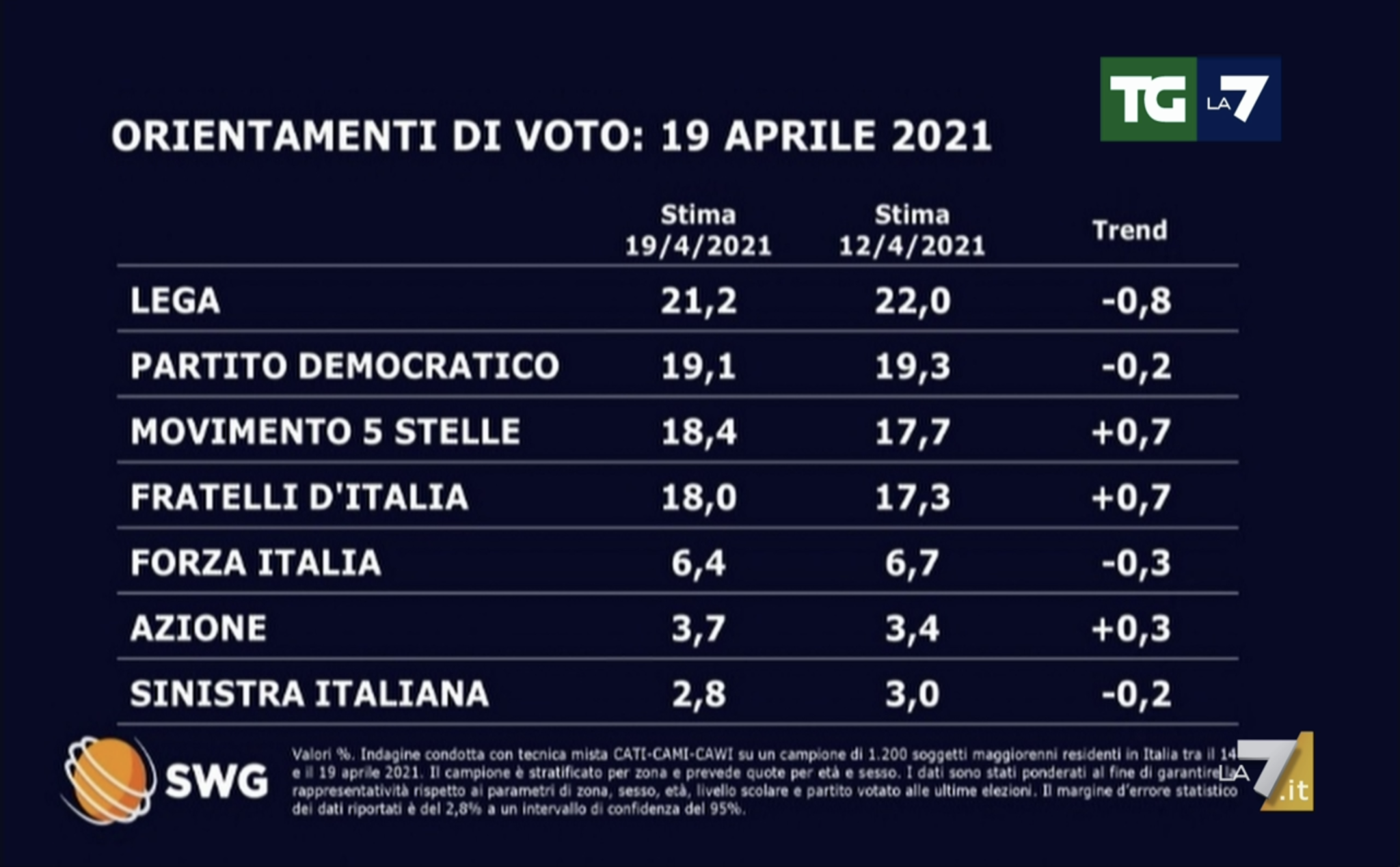 Sondaggi politici elettorali oggi (20 aprile 2021)