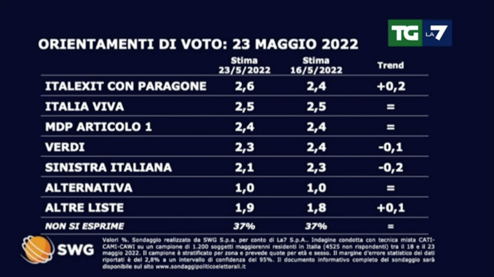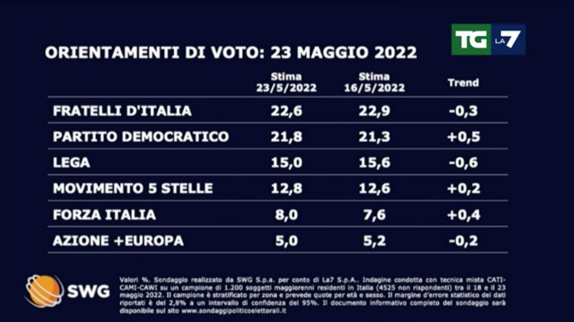 SONDAGGI POLITICI ELETTORALI OGGI 25 MAGGIO 2022