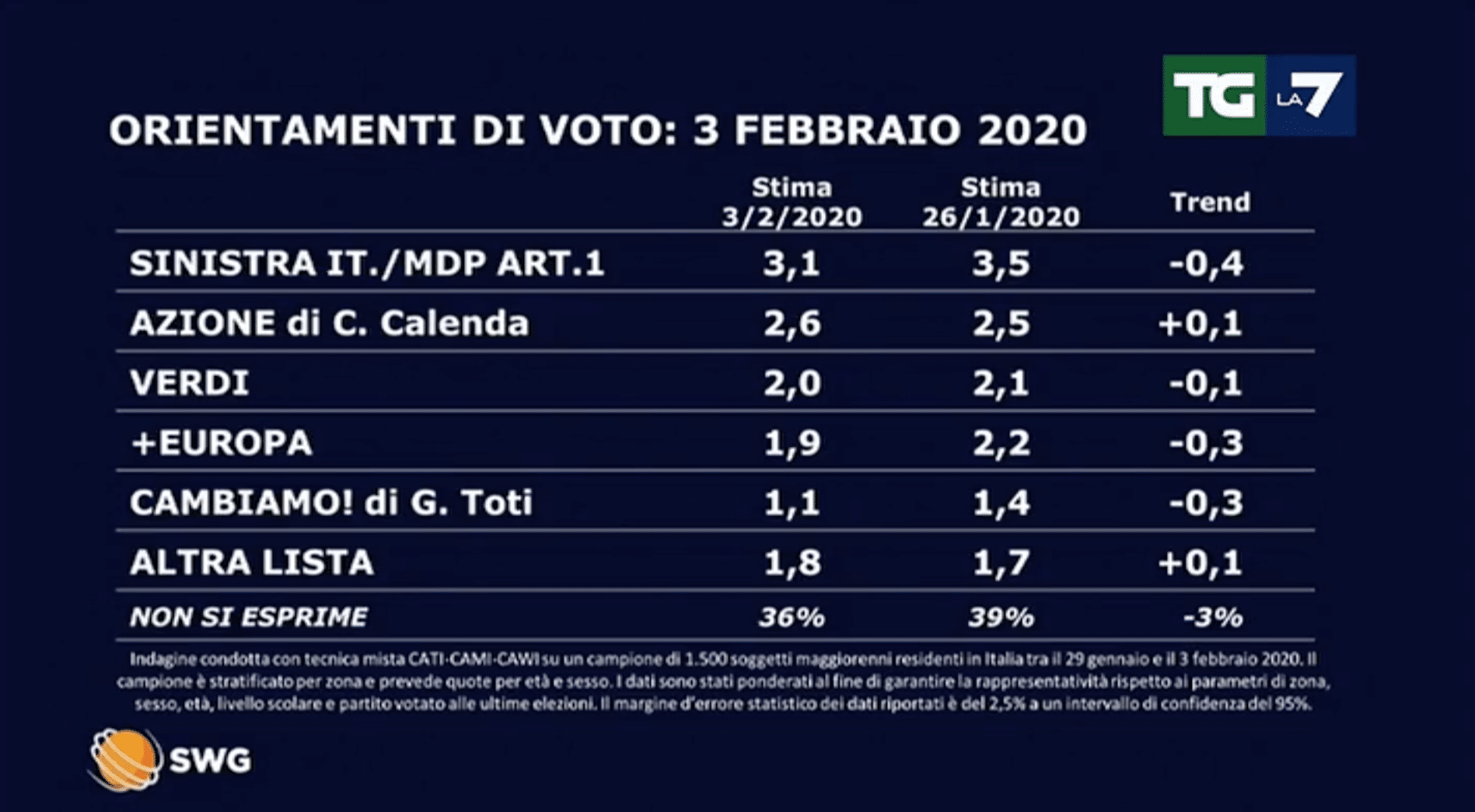 Nelle foto sottostanti, in breve, tutti i dati degli ultimi sondaggi condotti da Swg per il tg di La7:
