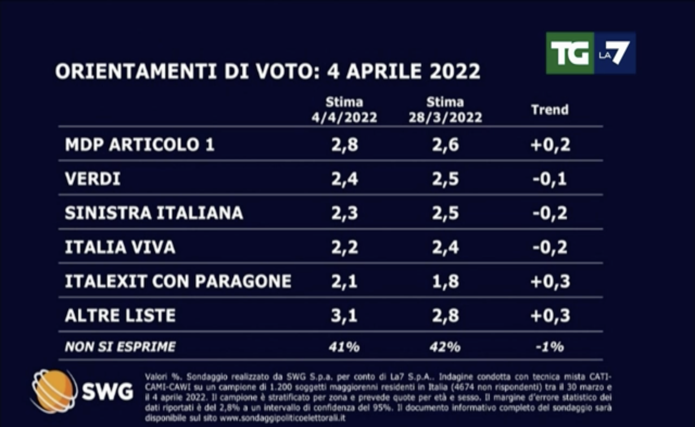 SONDAGGI POLITICI ELETTORALI OGGI 6 APRILE 2022