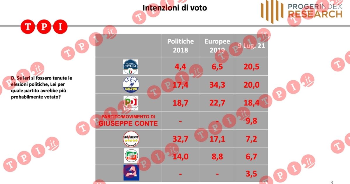 Sondaggio Esclusivo TPI: Meloni sorpassa per la prima volta Salvini, il partito di Conte saccheggia il M5S