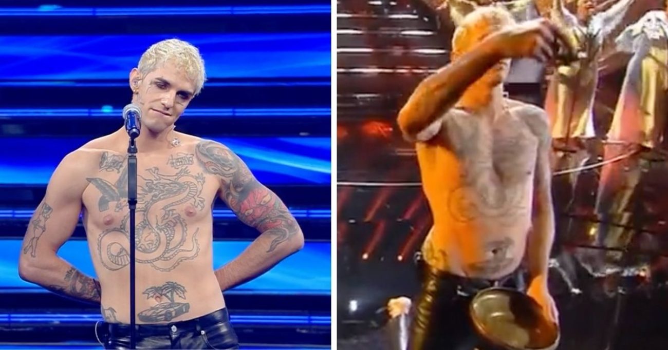 Nonostante il titolo del brano, la performance di Achille Lauro non è stata “scandalosa”. Il cantante, infatti, si è limitato a togliersi la giacca, rimanendo a petto nudo, e slacciandosi leggermente i pantaloni così come aveva già fatto sul palco dell’Ariston.