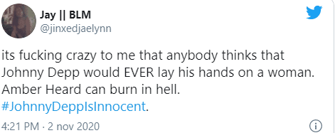 “Amber Heard pagherai per questo”, si legge su Twitter o ancora: “Spero che Amber Heard venga investita da un bus e muoia”. Qualcuno ha persino chiamato in causa la mamma dell’attrice, morta all’inizio di quest’anno: “Se tua mamma potesse vedere cosa hai fatto, sarebbe felice di essere morta”.
