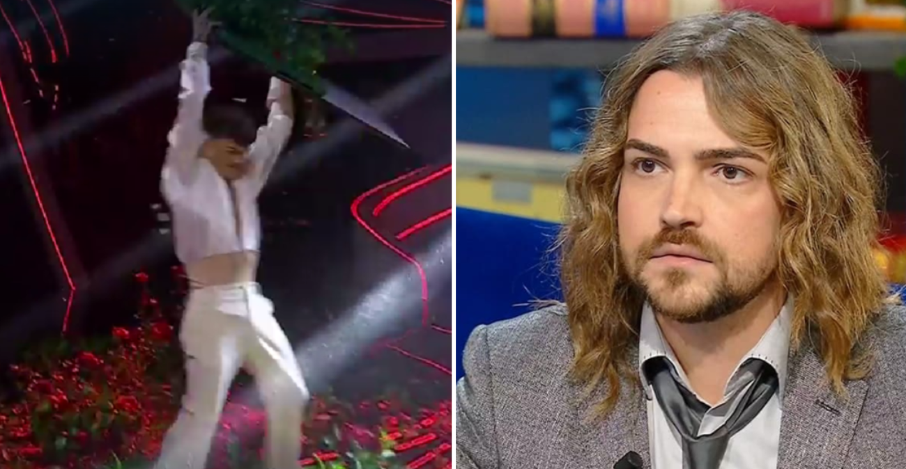 L’artista doveva presentare il suo nuovo singolo “L’isola delle rose”. Per problemi di audio si è poi indispettito rifiutandosi di cantare e distruggendo la coreografia floreale sul palco. Un gesto che non è piaciuto a nessuno, specie a chi assisteva. Tantissimi i fischi provenienti dal pubblico. Tutto molto in stile Sanremo, facendo rimanere gli spettatori con l’eterno dubbio: verità o scenetta organizzata?
