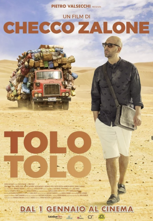 L’ultima volta che Zalone è arrivato al cinema era il 2016 con Quo Vado?. Nel poster di Tolo Tolo lo vediamo in bermuda, con le mani in tasca, gli occhiali da sole e i mocassini ai piedi.