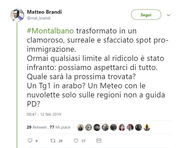 Mentre il Commissario Montalbano, in tv, non faceva nulla per nascondere la propria opinione sul tema (“Ancora con questa storia che i terroristi dell’Isis arrivano con i barconi?”), su Twitter arrivavano già le prime critiche a un film considerato troppo schierato politicamente e definito “uno spot pro-immigrazione”.