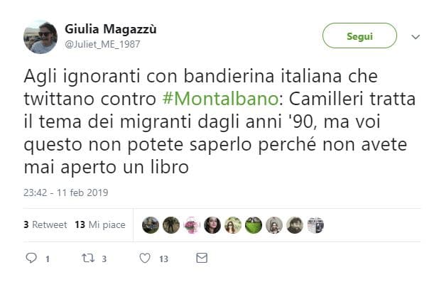 In mezzo, c’è anche chi non ha fatto mancare un po’ di ironia, soprattutto in direzione del ministro dell’Interno Matteo Salvini: “Ma ora Salvini farà chiudere anche il porto di Vigata?”, si chiede un utente.