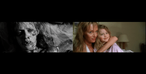 È il caso di Kill Bill vol. 1, la cui scena iniziale è un’inquadratura in bianco e nero dell’attrice Uma Thurman, che interpreta la protagonista, gravemente ferita. La scena finale ripresenta Uma Thurman, ma questa volta a colori, sana, e in compagnia della figlia.