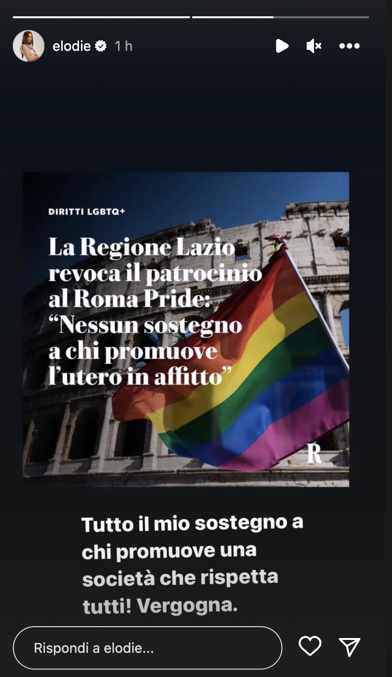 Elodie contro la Regione Lazio per la revoca del patrocinio al Gay Pride: “Vergogna”