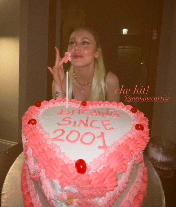 Jasmine Carrisi se la gode nel suo giorno ‘speciale’: festeggia i 22 anni con gli amici e per celebrare il compleanno sceglie una torta particolare. Sopra al dolce, che arriva dopo una succulenta cena stellata, si legge “Bitching since 2001”. Tradotto: “Orgogliosamente stron*a”. Si sente una regina quando spegne le candeline.