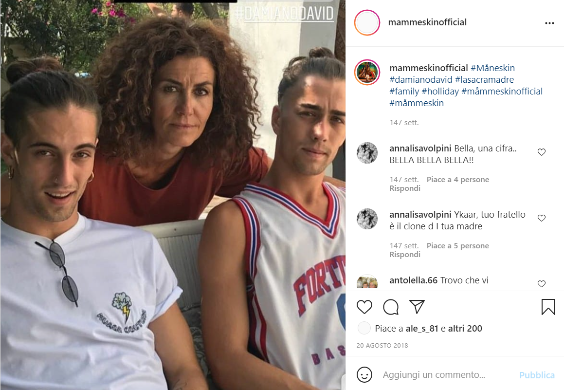 In altre foto, più recenti, la madre di Damiano è ritratta insieme a lui e all’altro figlio, Jacopo. Nell’ultimo mese, il cantante dei Maneskin è stato al centro delle accuse, poi rivelatesi del tutto infondate, di uso di droga. Il giovane cantante è risultato negativo al test antidroga. “Cocaina? Damiano uno sfigato, beve a malapena una birra”, aveva raccontato la band al quotidiano britannico The Guardian.