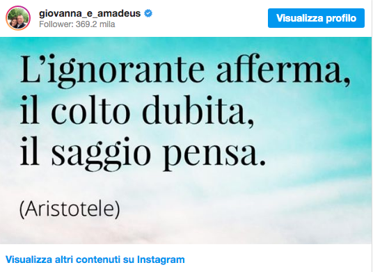 Subito sono trapelate le prime voci sulle possibili dimissioni di Amadeus dal ruolo di direttore artistico di Sanremo, e ieri si è tenuta una prima riunione tra il conduttore e l’ad della Rai Fabrizio Salini. Secondo un’indiscrezione del Corriere della Sera, Amadeus non avrebbe intenzione di lasciare Sanremo, ma sarebbe anzi deciso a combattere per ottenere il suo pubblico di figuranti, nonostante sia molto provato dalla vicenda. “Se non mi ammalo di Covid rischia di venirmi un infarto”, avrebbe detto il conduttore. Oggi sui profili social di Amadeus è arrivata un primo messaggio. “L’ignorante afferma, il colto dubita. Il saggio pensa“, scrive Amadeus citando Aristotele. Che il post velatamente polemico sia rivolto proprio a Dario Franceschini? Sui social se lo chiedono in molti.