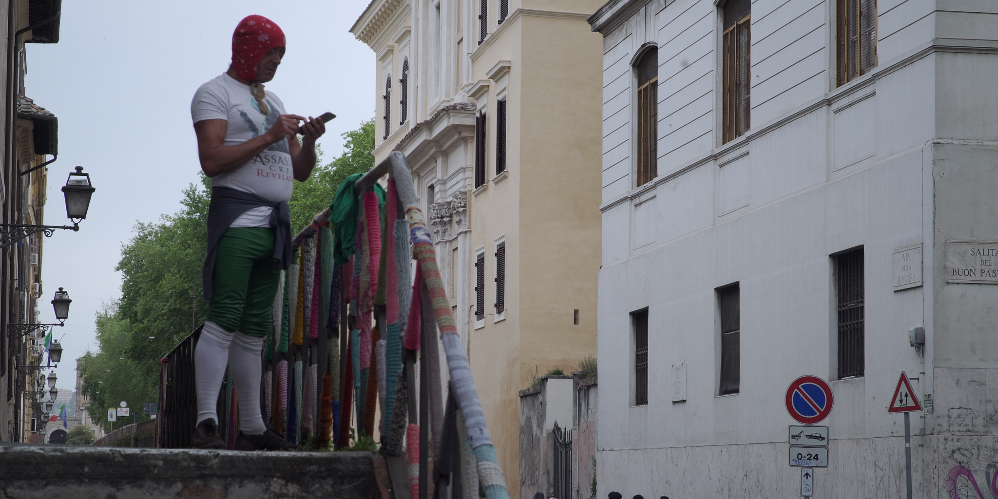 “Quando è scoppiata la pandemia noi stavamo girando una pubblicità in Canada. Siamo quindi rimasti bloccati varie settimane fuori dall’Italia. Quando finalmente siamo riusciti a tornare a Roma, per paura di portare il Covid a casa, mi sono affittato una stanza di un B&B a Trastevere. Complice anche il jet lag, uscivo al mattino presto per prendere un po’ di luce senza creare particolari problemi. Una mattina ho incontrato Karen Di Porto, una regista romana che conoscevo e con cui ho studiato in passato. Durante una passeggiata abbiamo visto Ercole, uno dei protagonisti del documentario, che faceva ginnastica. Nel pomeriggio Karen mi ha chiamato e abbiamo deciso di andare a filmare. Io avevo fatto uscire un altro documentario dal titolo O’Cumpagn Mij, che seguiva la vita di due pugili di Marcianise, una storia di riscatto. Karen l’aveva visto e mi ha detto: andiamo! Giriamo”.