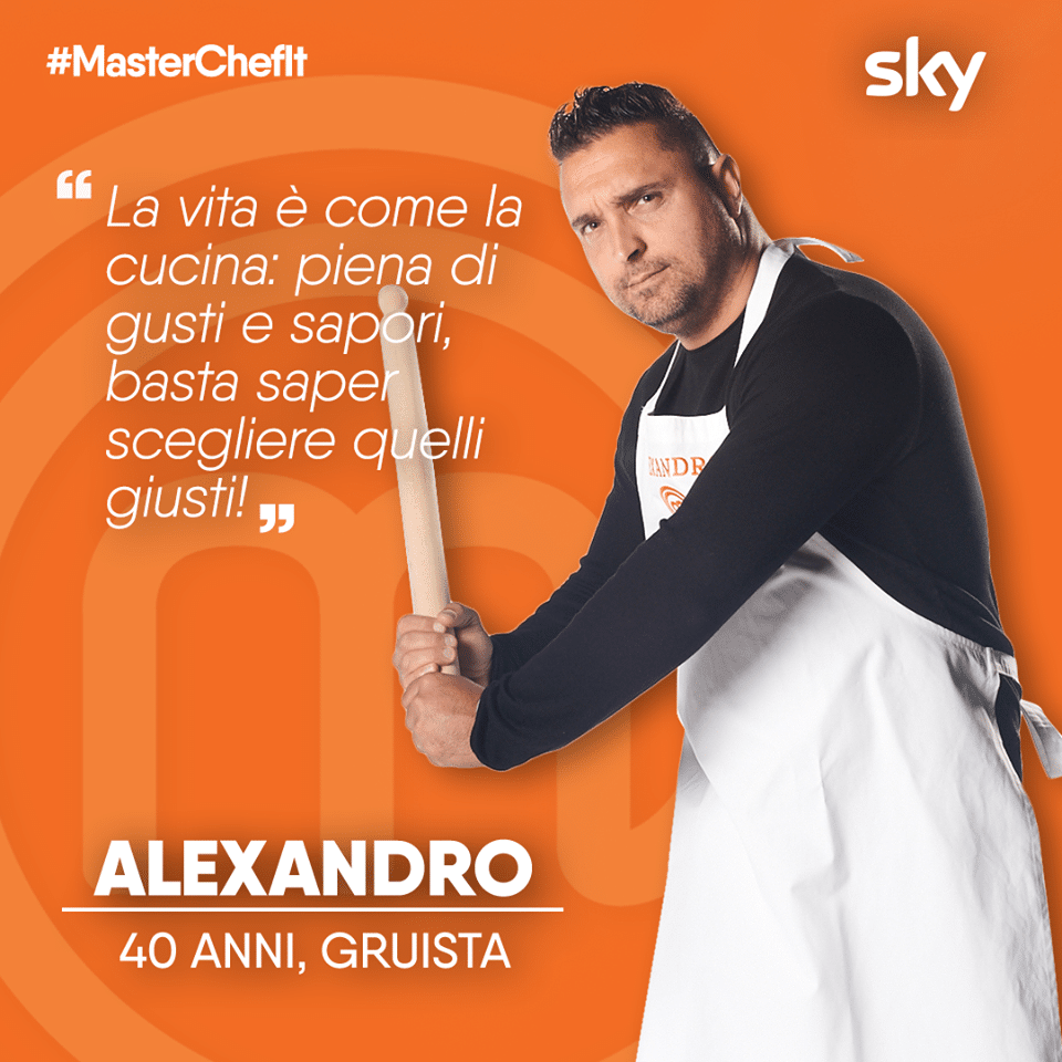 Alexandro, romano di 40 anni, nella vita è un manovratore di piattaforme aeree, ma la passione per la cucina è esplosa quand’era un bambino, quando rubava le pentole alla mamma per cucinare. Il piatto che maggiormente lo rappresenta è la carbonara, sostanzioso, gustoso e abbondante.