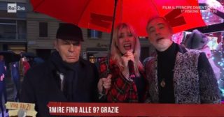 I Jalisse, però, non si sono bagnati visto che a proteggerli con l’ombrello c’era Bruno Vespa, anche egli ospite del programma di Fiorello.