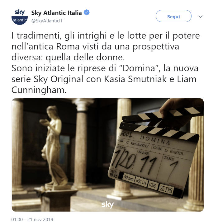 Domina, al via le riprese della nuova serie tv Sky Original