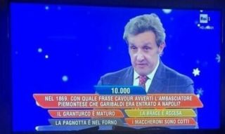 Gaffe a L’Eredità il programma condotto da Flavio Insinna su Rai 1. In una domanda del quiz televisivo si chiede al concorrente di rispondere su alcune frasi pronunciate da Camillo Benso conte di Cavour nel 1869. “Nel 1869, con quale frase Cavour avvertì l’ambasciatore piemontese che Garibaldi era entrato a Napoli?”, era il testo della domanda. Ma il quesito contiene un clamoroso errore temporale: Cavour, infatti, risulta morto a Torino otto anni prima di quella data, vale a dire il 6 giugno 1861. La risposta esatta, se la data fosse stata corretta, sarebbe stata “I maccheroni sono cotti, e noi li mangeremo”. Secondo i libri di storia, infatti, Cavour inviò un telegramma all’ambasciatore piemontese in Francia il 7 settembre 1860, annunciando l’arrivo di Giuseppe Garibaldi a Napoli con quella frase. A sottolineare l’errore temporale della domanda sono stati gli spettatori de L’Eredità attraverso i social. Tra i primi è Mario Adinolfi con un post su Facebook.