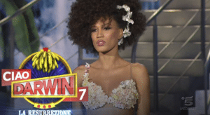 Capelli ricci e folti, pelle color bronzo e grandi occhi scuri hanno stregato gli italiani quando per la prima volta è andata in onda la puntata di Ciao Darwin che l’ha vista come Madre Natura. L’esperienza al programma di Paolo Bonolis non è stata così idilliaca per la giovane modella, in tanto hanno espresso commenti razzisti e l’hanno persino chiamata “scimmia”, un’etichetta che alla modella non è andata giù e scherzosamente, su Facebook, ha risposto con un semplice commento: “Scimmia io?” seguito da risate.