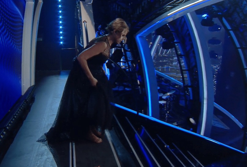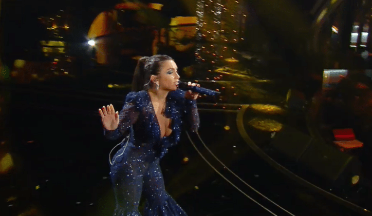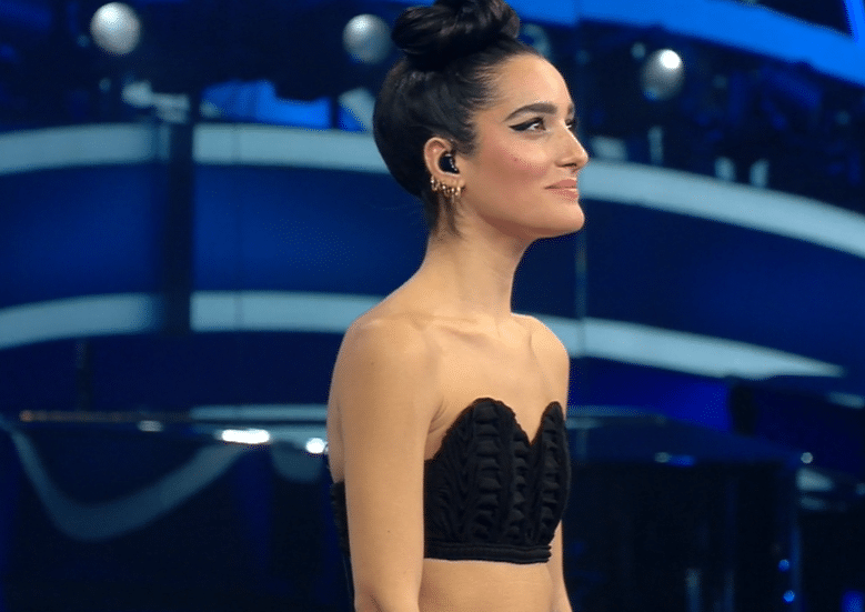 Elodie si presenta all’ultima puntata di Sanremo con un abito sensuale nero, dalla profonda scollatura.