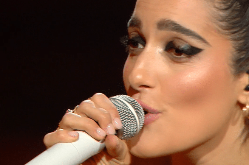 Look total black anche per Levante questa sera, per la finale di Festival di Sanremo. Il modello è facsimile dei precedenti, ma il look di questa sera è aggressive, i capelli legati a chignon e eyeliner doppio sugli occhi a marcare il concetto.