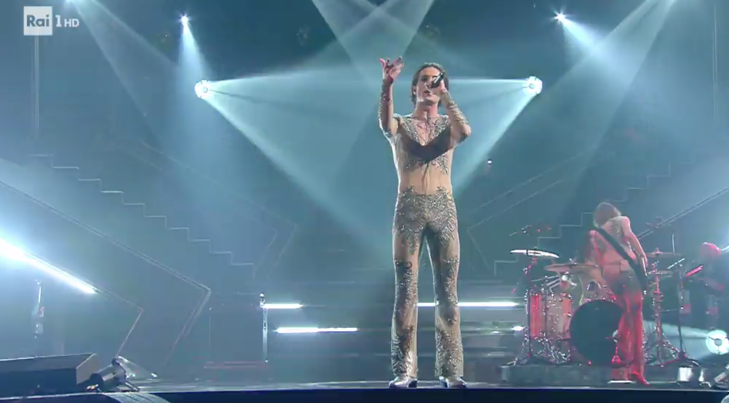 Nude look di Arisa + applicazioni di brillanti (tanto per cambiare) = outfit della band (by Etro). C’è forse qualcosa anche del look “San Francesco” di Achille Lauro dell’anno scorso. VOTO: 7+.