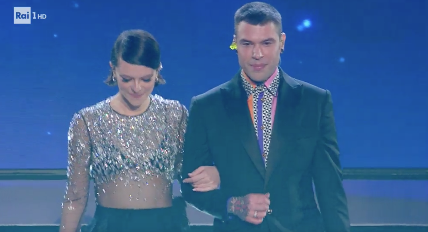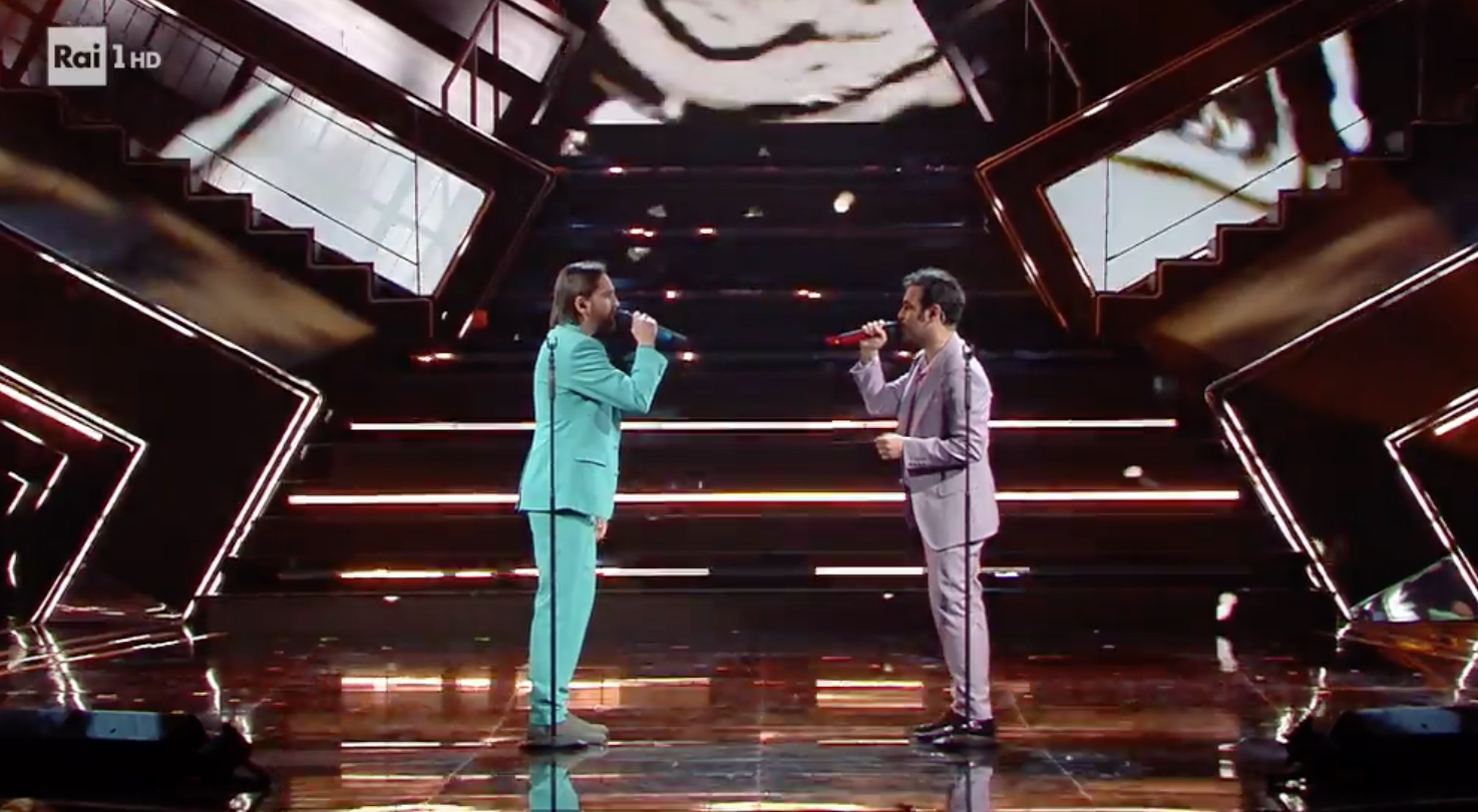 Forse si sono dimenticati di essere sul palco dell’Artiston e non in California. La camicia bowling di lui non è adatta al Festival di Sanremo. Anche la fantasia animalier rossa stride con tutta l’atmosfera. VOTO 5.