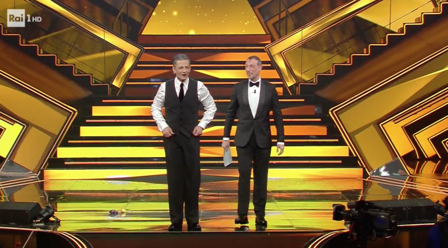 Come indossare bene un abito elegante di Giorgio Armani? Chiamare Fiorello. I dettagli? Impeccabili. Il fit, pure. VOTO 9 (rossetto scuro e smalto color Morgan inclusi nel giudizio).