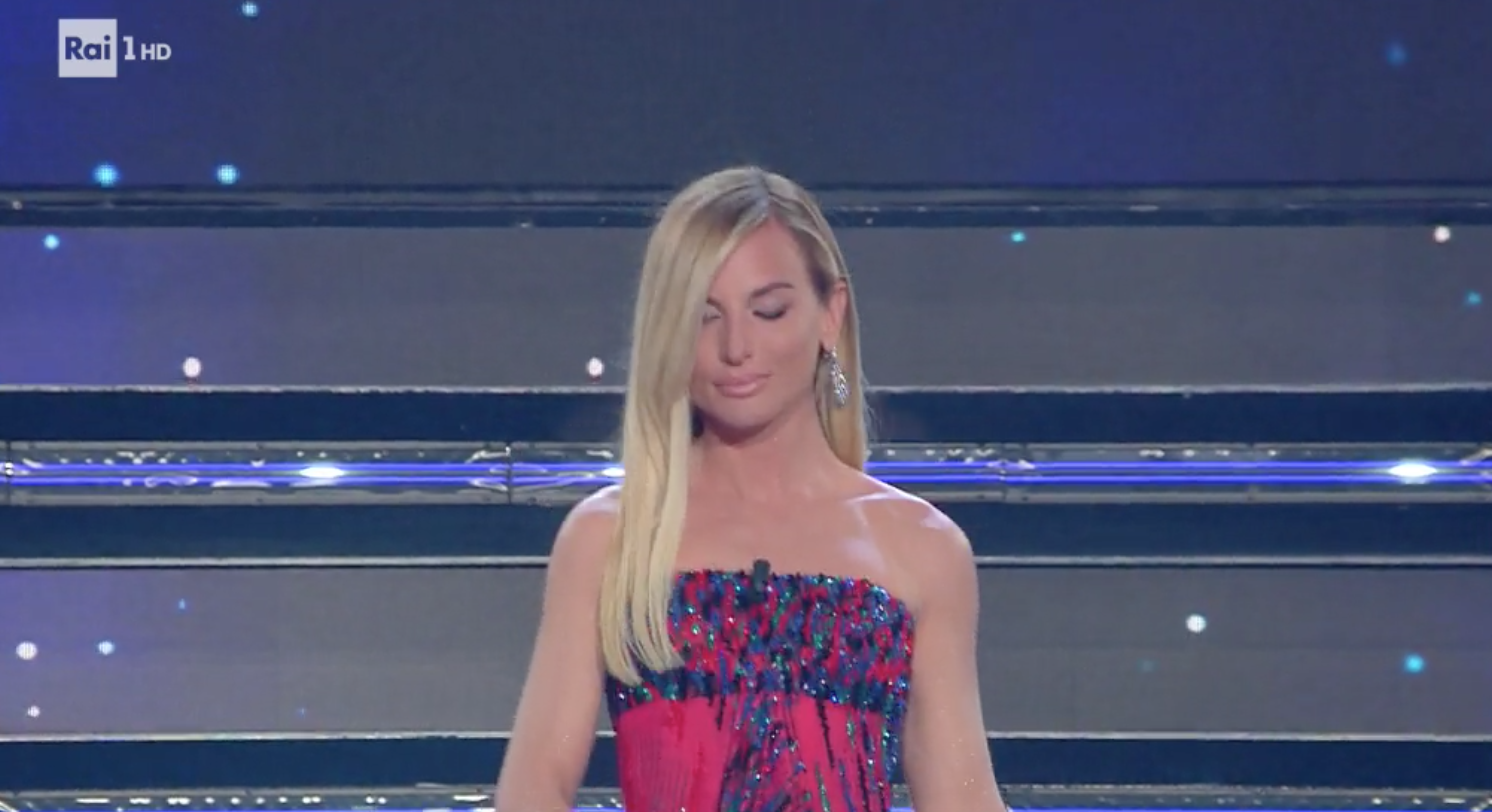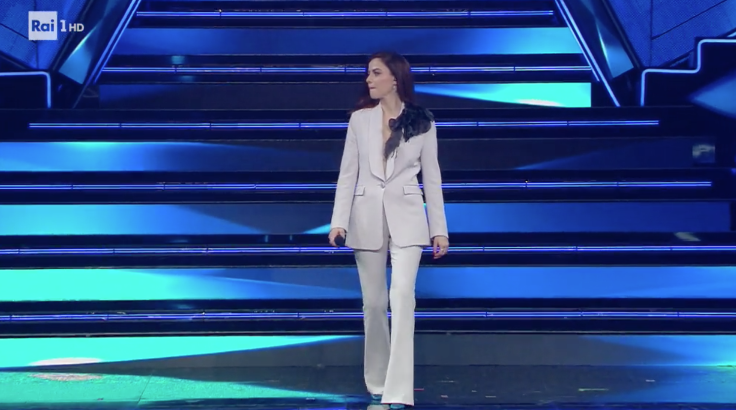 In un tailleur bianco ottico di Giorgio Armani, la giornalista illumina il palco dell’Ariston. Finalmente la vediamo con un look wow anziché i soliti abiti per il daytime di Forum. Aspetto un bel gown dress ora. VOTO: 9.