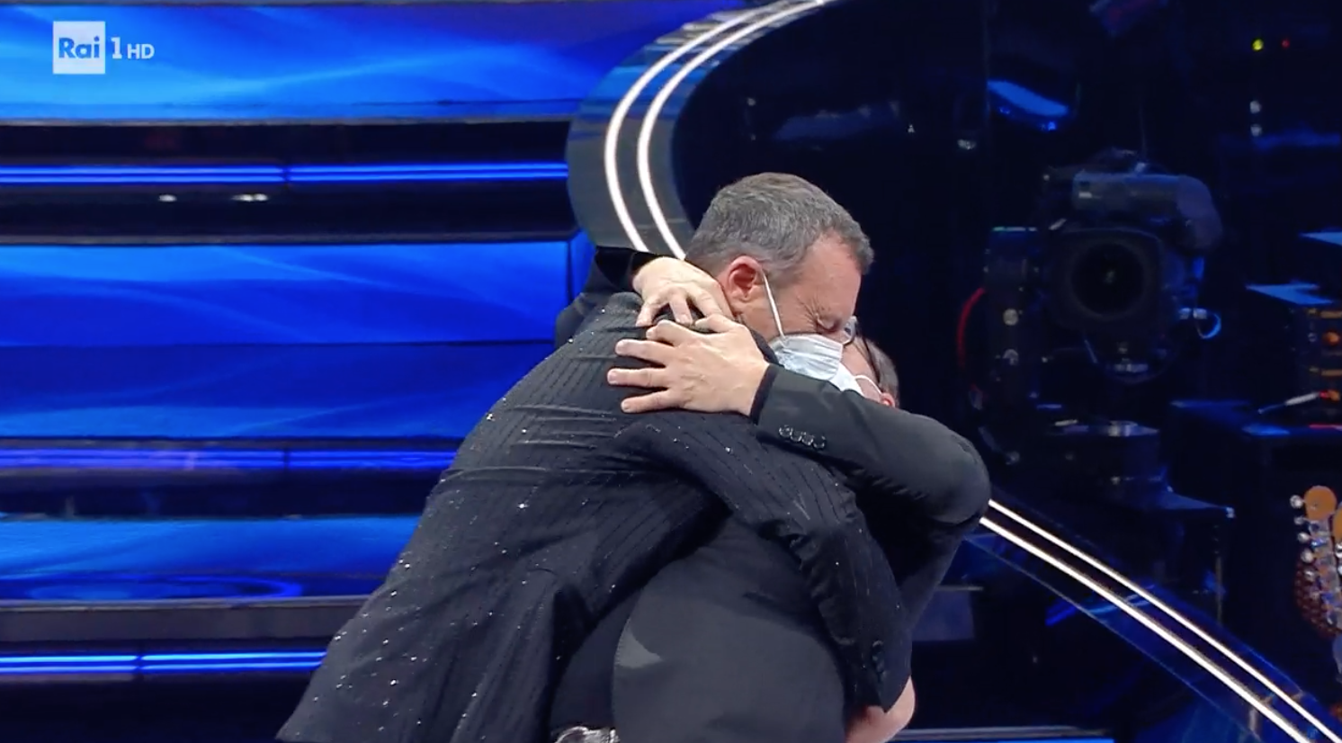 - Fiorello fa baciare Amadeus con il direttore di Rai 1 Stefano Coletta.