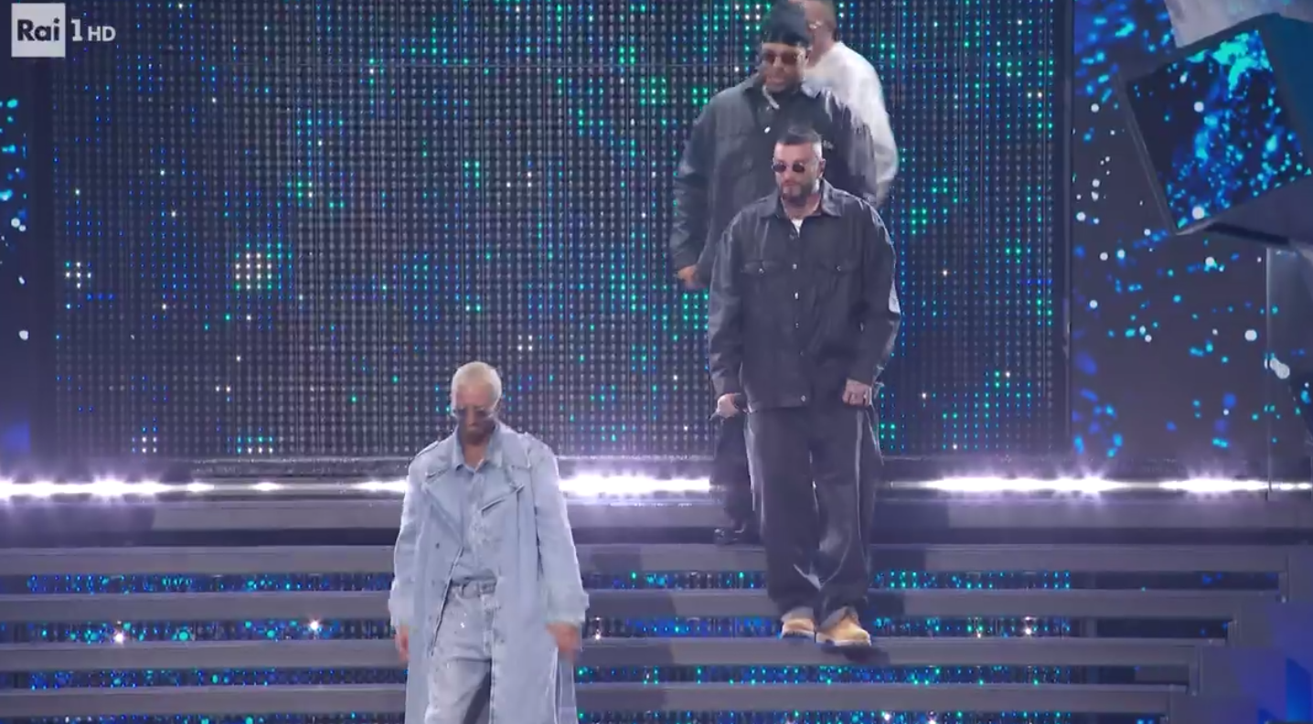 Sanremo 2025, abiti di Shablo, Guè, Joshua e Tormento per la terza serata del Festival: look e stilista