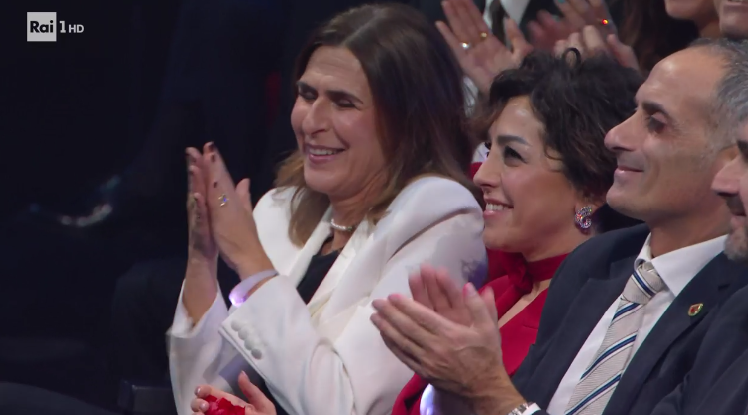 Sanremo 2025, l’abito della moglie di Carlo Conti (Francesca Vaccaro) quarta serata Festival: stilista, look
