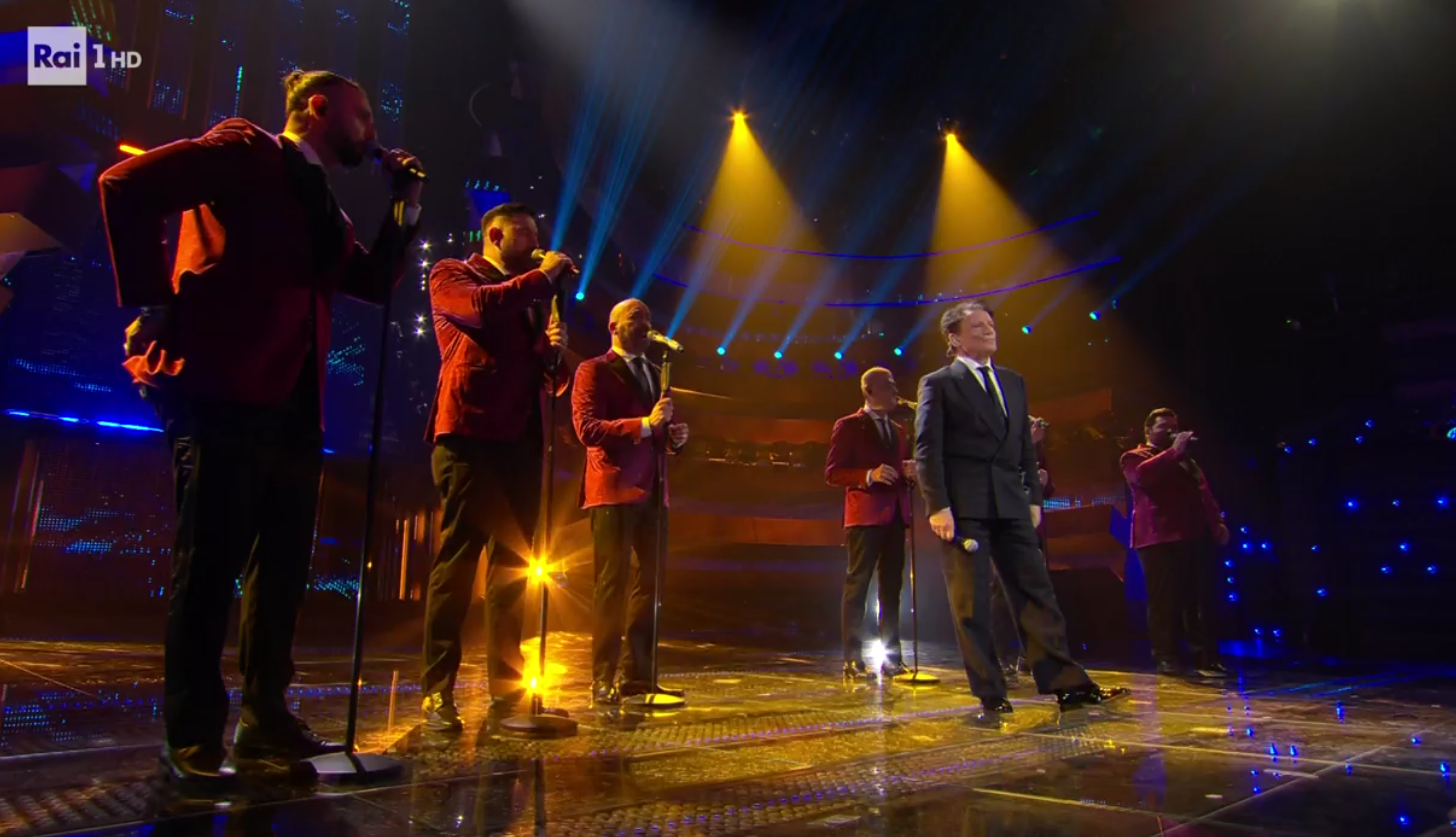Sanremo 2025, gli abiti de I neri per caso ospiti quarta serata del Festival: look e stilista
