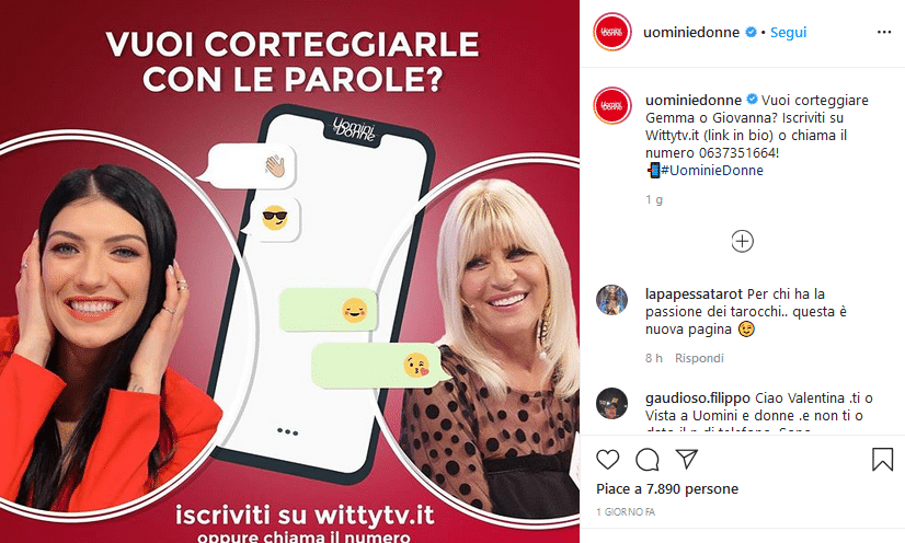 Oggi giorno la telefonia è divenuta indispensabile, non possiamo concepire una normalità che non includa chat di messaggistica come WhatsApp, Messenger, Telegram e similari, per cui non stupisce l’esperimento di Witty. Il messaggio è stato lanciato sulle piattaforme social di Witty Tv, ma come funziona? Per proporsi a Gemma e Giovanna c’è bisogno di compilare l’apposito format disponibile sul sito web che invita gli aspiranti corteggiatori a raccontarsi: chi colpirà la redazione poi sarà sottoposto all’attenzione dei due volti di Uomini e Donne.