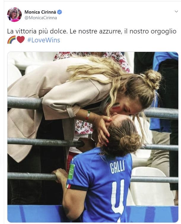 La senatrice Pd Monica Cirinnà, pensando che fosse la fidanzata dell’azzurra, ha accompagnato il post con un commento che alludeva a un presunto legame sentimentale tra le due. E invece la ragazza in questione era la sorella della centrocampista della Juventus e della Nazionale.