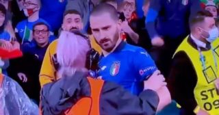 Bonucci scambiato per un invasore al termine di Italia-Spagna: la steward prova ad allontanarlo