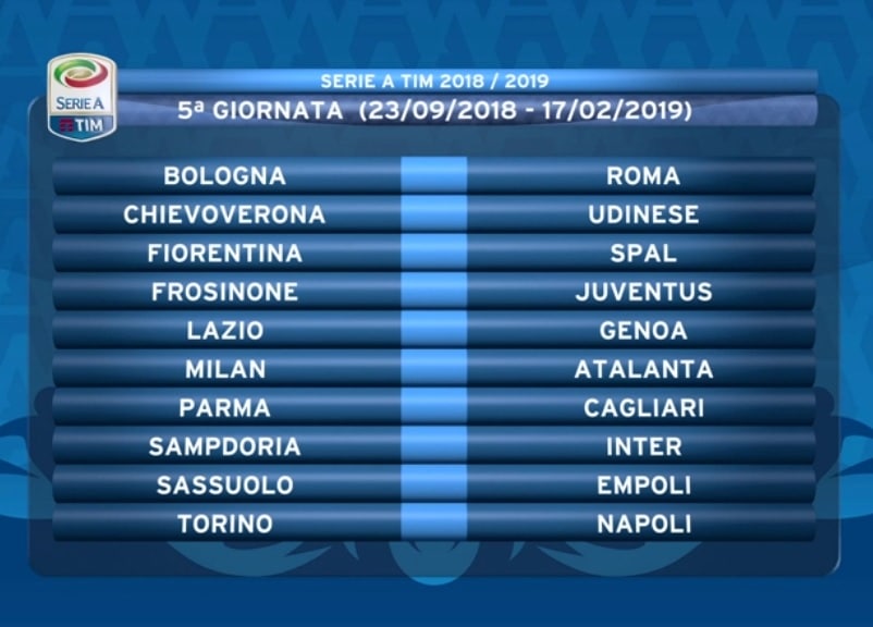 CALENDARIO JUVENTUS 2018 2019 QUINTA GIORNATA