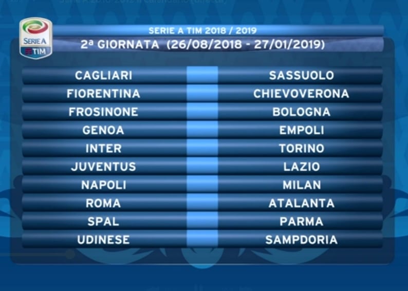 SECONDA GIORNATA SERIE A 2018-2019