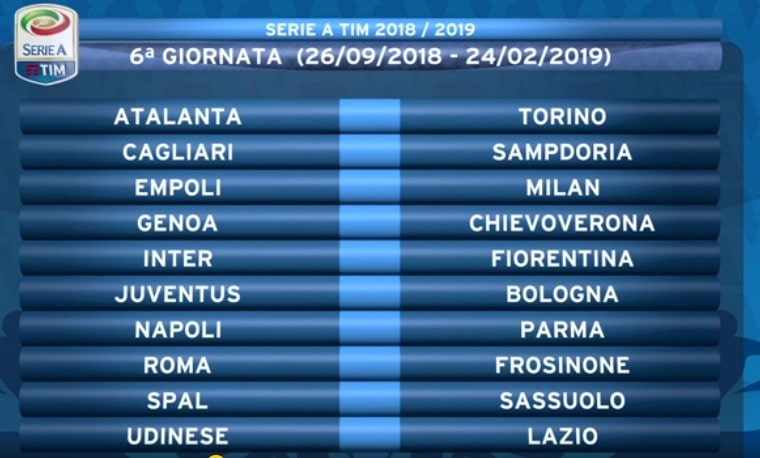 CALENDARIO JUVENTUS 2018 2019 QUINDICESIMA GIORNATA