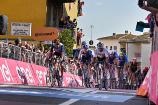 I battistrada transitavano all’Intergiro, posto a Guardia Sanframondi a 37 chilometri dall’arrivo, con un vantaggio di quasi cinque minuti sul gruppo della maglia rosa. Era proprio questo traguardo parziale a rompere gli equilibri tra i battistrada con Tratnik che si lanciava in un utopico assolo seguito a un minuto da un quartetto formato da Valentin Paret-Peintre, Bardet, Bagioli e Frigo con i resti della fuga distanziati d’un altro minuto. Lo sloveno, inizialmente, non mostrava alcun segno di cedimento. Per parte loro, i due francesi si liberavano dei due giovani italiani ai meno 12 dal traguardo. Tuttavia, pur proseguendo in perfetta armonia, Bardet e Paret-Peintre faticavano a recuperare su Tratnik. A 4.000 metri dal traguardo Valentin piantava Bardet piombando nello spazio di poco più d’un chilometro sullo sloveno, andato improvvisamente in affanno. Anche Bardet riusciva a sopravanzare Tratnik ma nulla poteva contro l’esplosiva freschezza del giovane connazionale che conquistava agevolmente il successo di giornata.