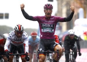 La quinta tappa, interamente in territorio laziale da Frascati a Terracina si è svolta sotto una pioggia incessante al punto da indurre la giuria a neutralizzare la corsa ai meno 9 km dall’arrivo, congelando i tempi per la classifica generale e limitando il circuito finale solo alla lotta per la vittoria di tappa. Allo sprint, ha prevalso Pascal Ackermann che ha rimontato negli ultimi Fernando Gaviria con Arnaud Demare che ha conquistato la terza moneta. Il campione tedesco della Bora Hansgrohe si è esibito in uno sprint opposto a quello di Fucecchio dove si era imposto partendo da lontano.
