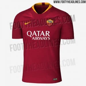 La prima maglia 2018/19 della Roma dovrebbe essere, come da storia, prevalentemente rossa. Rispetto a quella utilizzata in questa stagione, cambia invece il colletto sia nel giallo sia nella forma e una sottile stampa grafica sul davanti e sul retro della maglia.