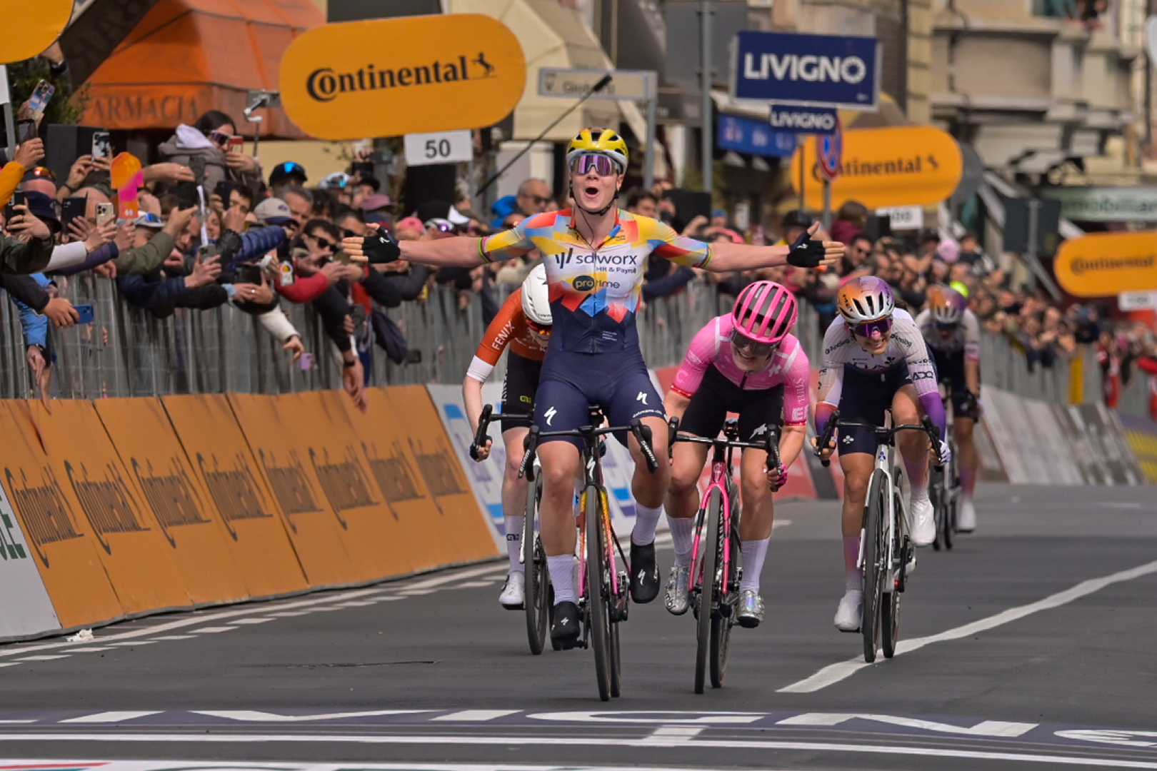 Il campione del mondo Tadej Pogacar (UAE Team Emirates XRG) ha vinto la 117ma edizione della Milano-Sanremo, percorrendo i 298 chilometri, da Pavia fino al traguardo di via Roma, in 6h35’49” alla media di 45.172 km/h. Il fuoriclasse di Komenda ha preceduto, al termine d’un seratissimo sprint, l’inglese Thomas Pidcock (Pinarello Q 36.5), l’unico capace di resistere ai ripetuti attachi dello sloveno negli ultimi 30 chilometri. Al terzo posto si è classificato il fiammingo Wout van Aert (Team Visma Lease a Bike) staccato di tre secondi dai duellanti.