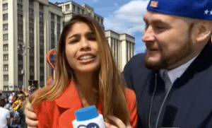 La giornalista colombiana era a Saransk per seguire la Coppa del mondo quando un uomo è comparso dal nulla, le ha messo una mano sul seno e l’ha baciata sulla guancia. Poi ha sorriso alla telecamera ed è sparito nella folla.
