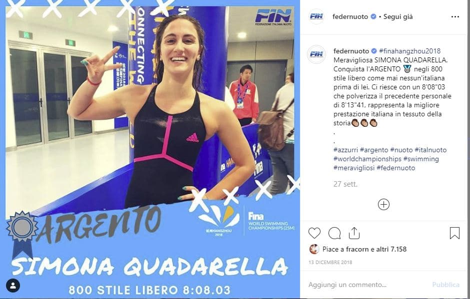 - Simona Quadarella negli 800 stile libero in 8’25”55 e nei 1500 stile libero in 16’04”02
