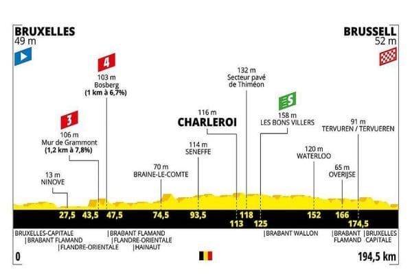 La prima tappa del Tour 2019 prevede 194,5 chilometri: si parte e si arriva a Bruxelles (Belgio). Molto probabilmente assisteremo a una volata. La partenza dalla capitale del Belgio sarà la seconda dopo quella del 1958 e porterà il gruppo sulle strade delle grandi classiche fiamminghe.