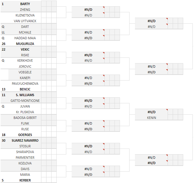 Prima di incontrare Barty, Serena troverà sulla sua strada Angelique Kerber, testa di serie numero 5 e campionessa 2018. Per la tedesca primo turno contro Maria. Non solo, per Kerber il tabellone non è affatto facile perché al terzo turno potrebbe incrociare Sharapova che affronterà Parmentier al primo turno e una tra Suarez Navarro e Stosur al secondo.
