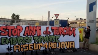 Cronaca / Roma, blitz degli attivisti di fronte all'azienda che invia armi in Turchia