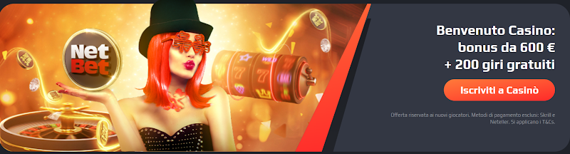 Netbet >> Tra i migliori casino online bookmakers aams >> Bonus ADM 600€ + 200 giri gratis