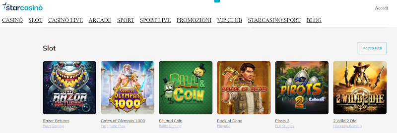 | Star | 5000€ senza deposito + Bonus prima ricarica | Bonus aumentato per registrazione con Spid e CIE |