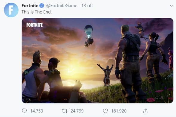Tutto è iniziato intorno alle 20 di domenica 13 ottobre quando, durante un evento noto come “The End“, tutti i giocatori di Fortnite online in quel momento (circa 6 milioni, secondo le stime) all’improvviso hanno perso il controllo del loro avatar. A prescindere dalle azioni del giocatore, infatti, dall’isola sono partiti alcuni razzi, diretti verso un’area sullo sfondo dove subito dopo è caduto un meteorite. In quel momento, tutti i personaggi del gioco sono stati sollevati in aria, per poi essere attratti da un buco nero che ha pian piano risucchiato ogni cosa.